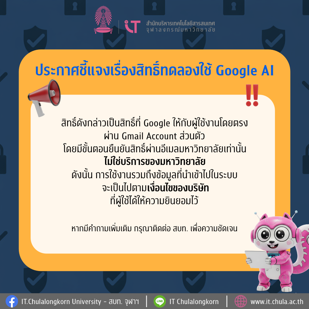 📢 ประกาศชี้แจงเรื่องสิทธิ์ทดลองใช้ Google AI